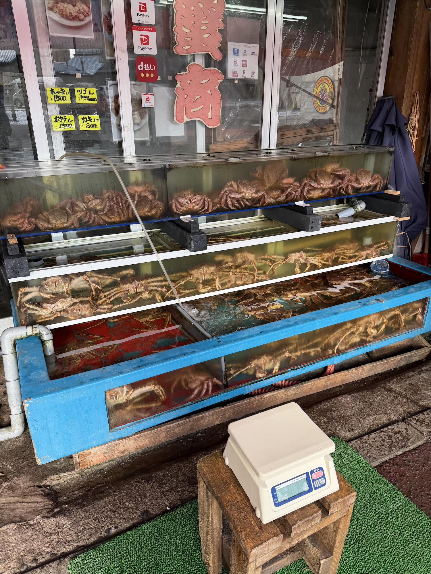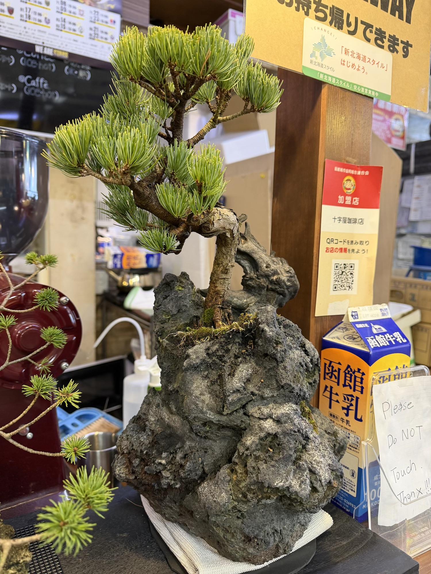 Northern Japan got buried in snow this year, and we def felt it on this trip.Contributing to the oyster shortage.Definitely no crab shortage, though.One of the coffee shops at the market had some of the coolest bonsai I've seen because the owner's friend is a bonsai artist. Because of course they are.Who needs pot when you have rock?Did I mention snow? Yeah.