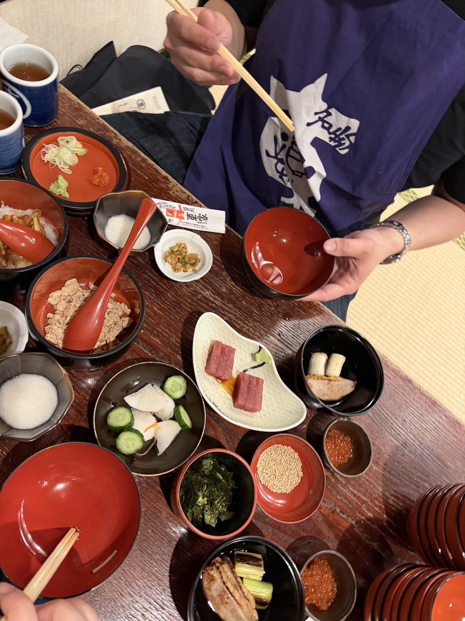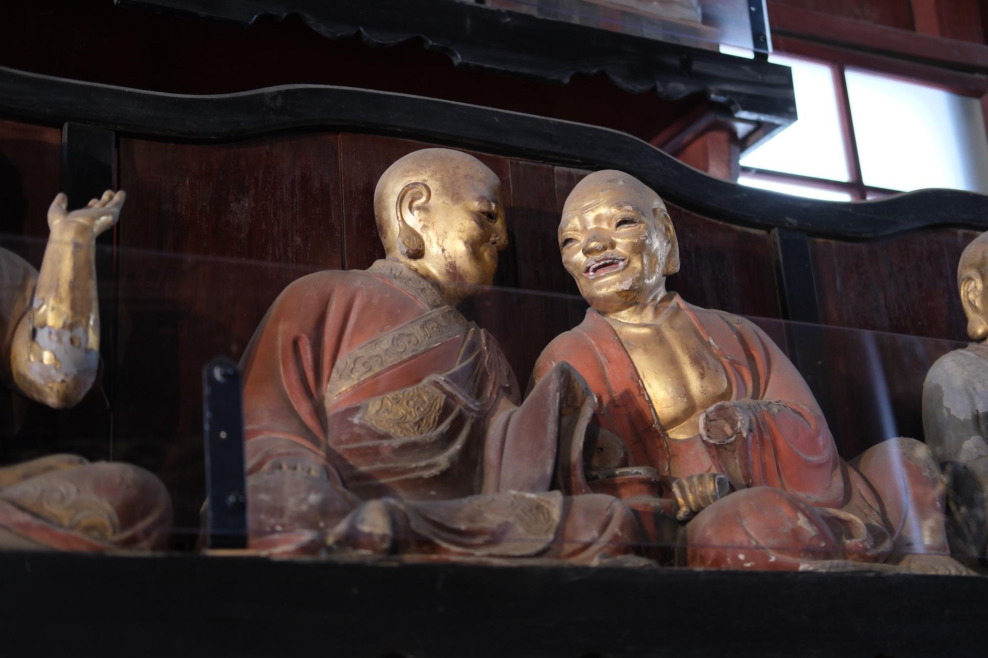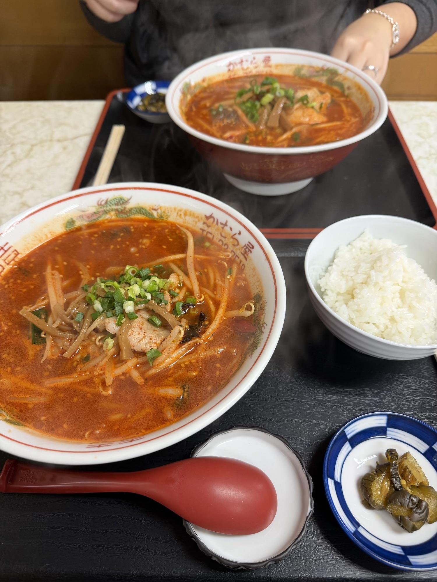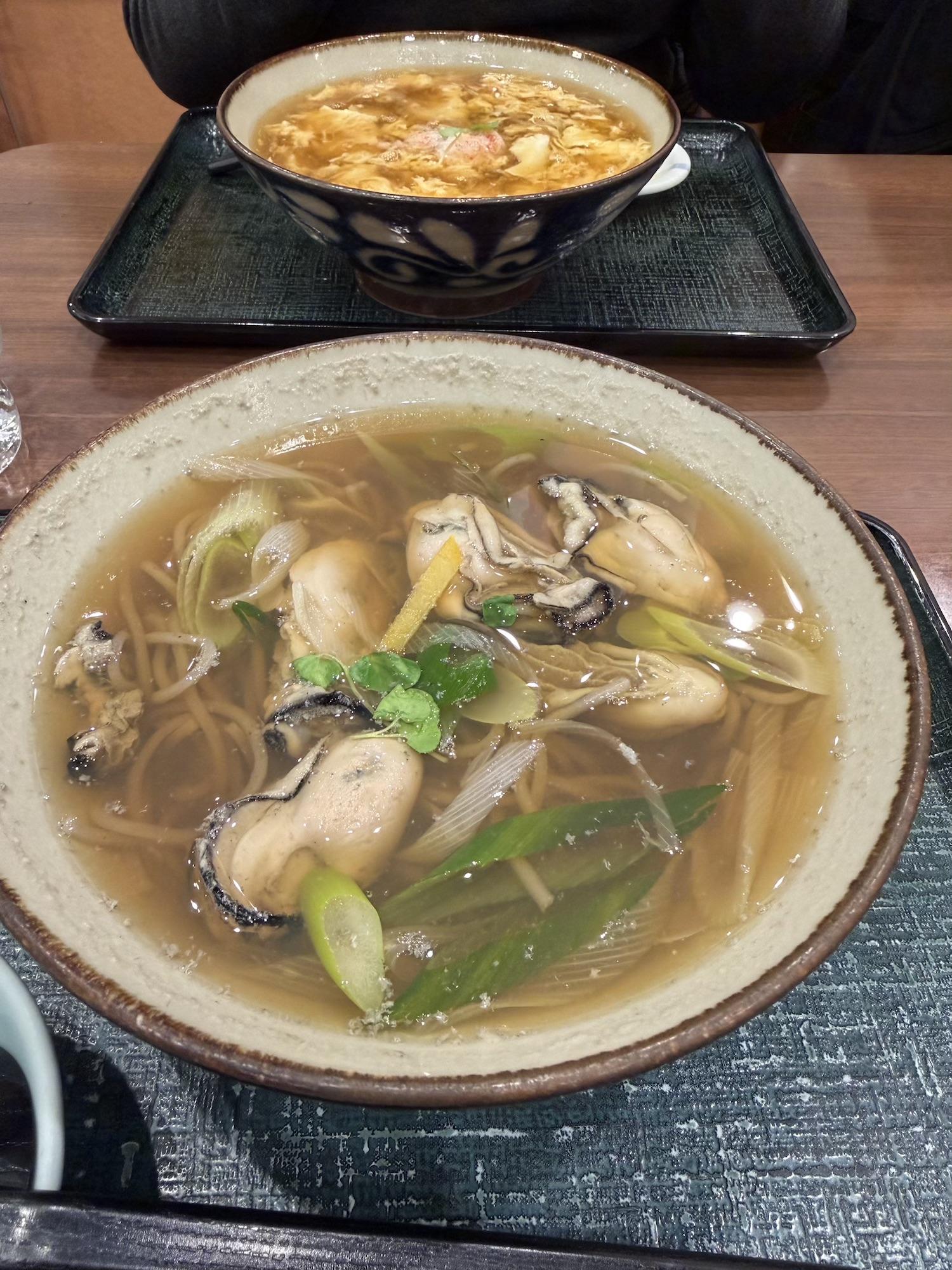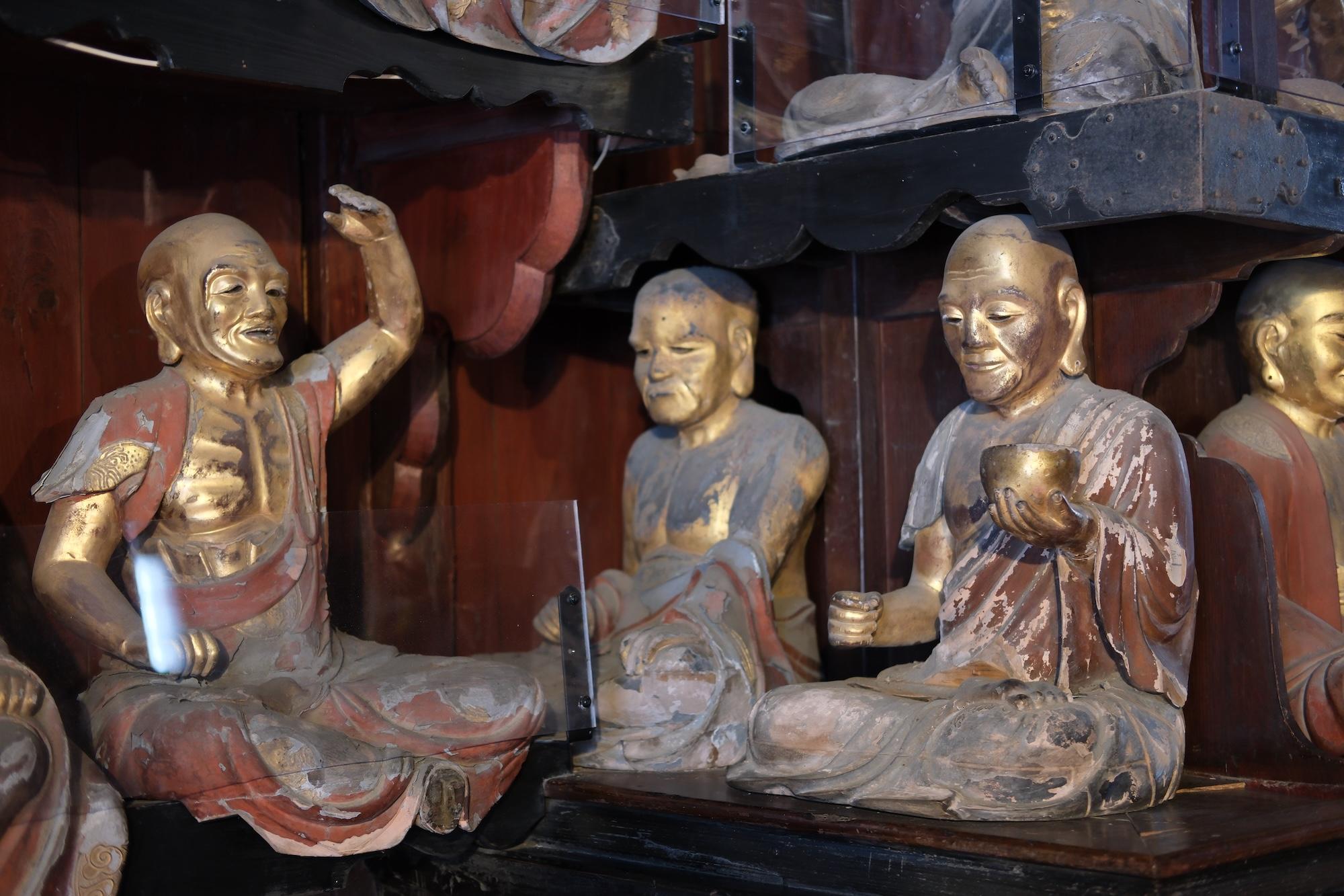 This setup is for wanko soba, one of Morioka's three signature noodles. The main attraction is soba, which is served in bite-sized bowls. I didn't know this going in, but it's a contest format where an attendant stands by you the entire time, chanting and refilling the bowl until you cry uncle. It's both a lot of food and a lot of entertainment.170 on my first attempt. It ain't much, but it's honest work. (I'm coming back for 200)Next day at the temple... Despite the freezing cold + snow, people still showed for hatsumode.This spicy ramen (actually spicy, not just Japanese spicy) was at a Chinese fusion sort of restaurant. Morioka seems to carry a lot of foreign influence -- e.g. two of their signature local noodles, reimen + jajamen, have distinctly Korean tones.Statues of 500 rakan (also translated arhat) at Hoonji.Contributing to the oyster shortage, part 2...