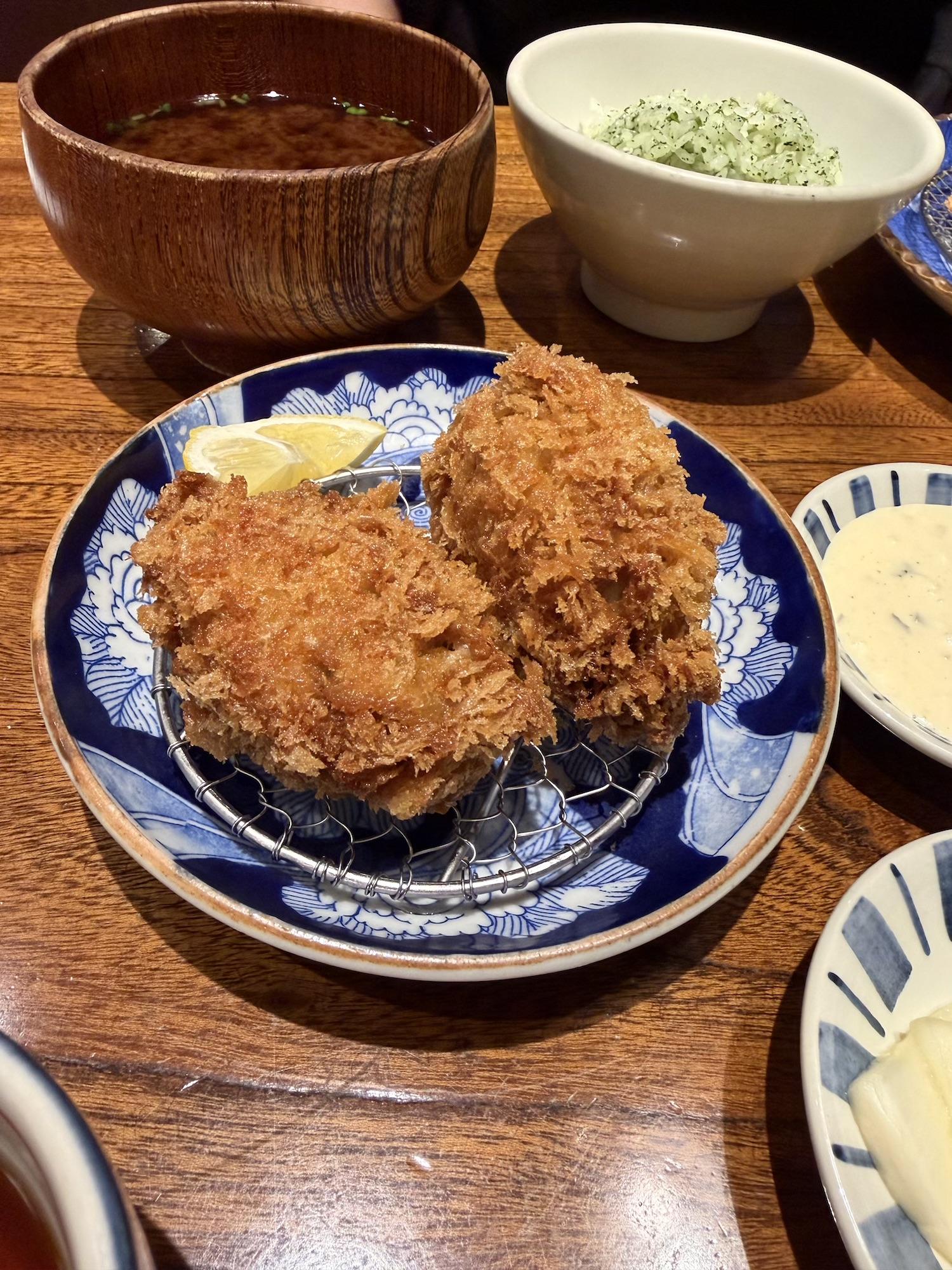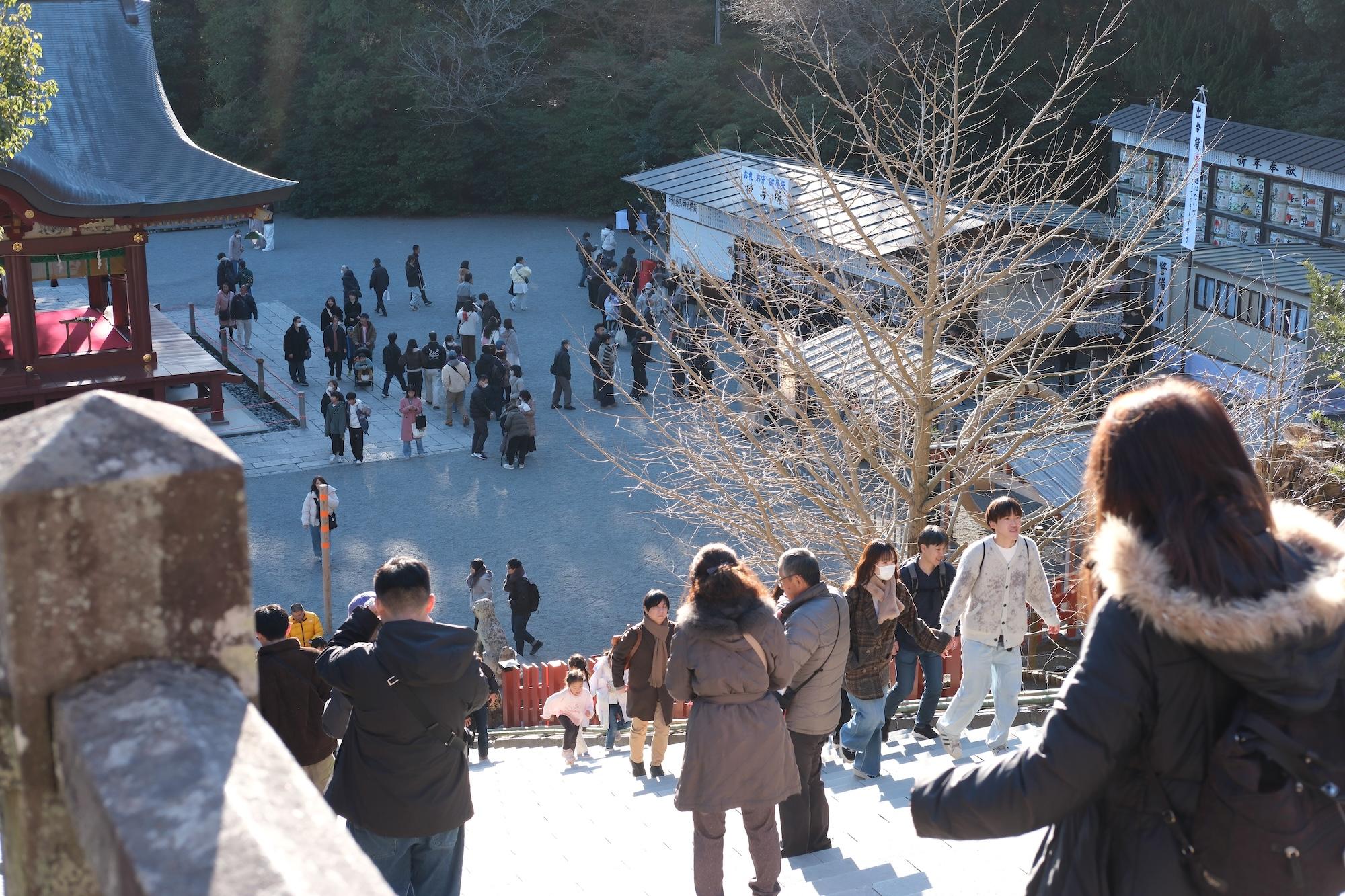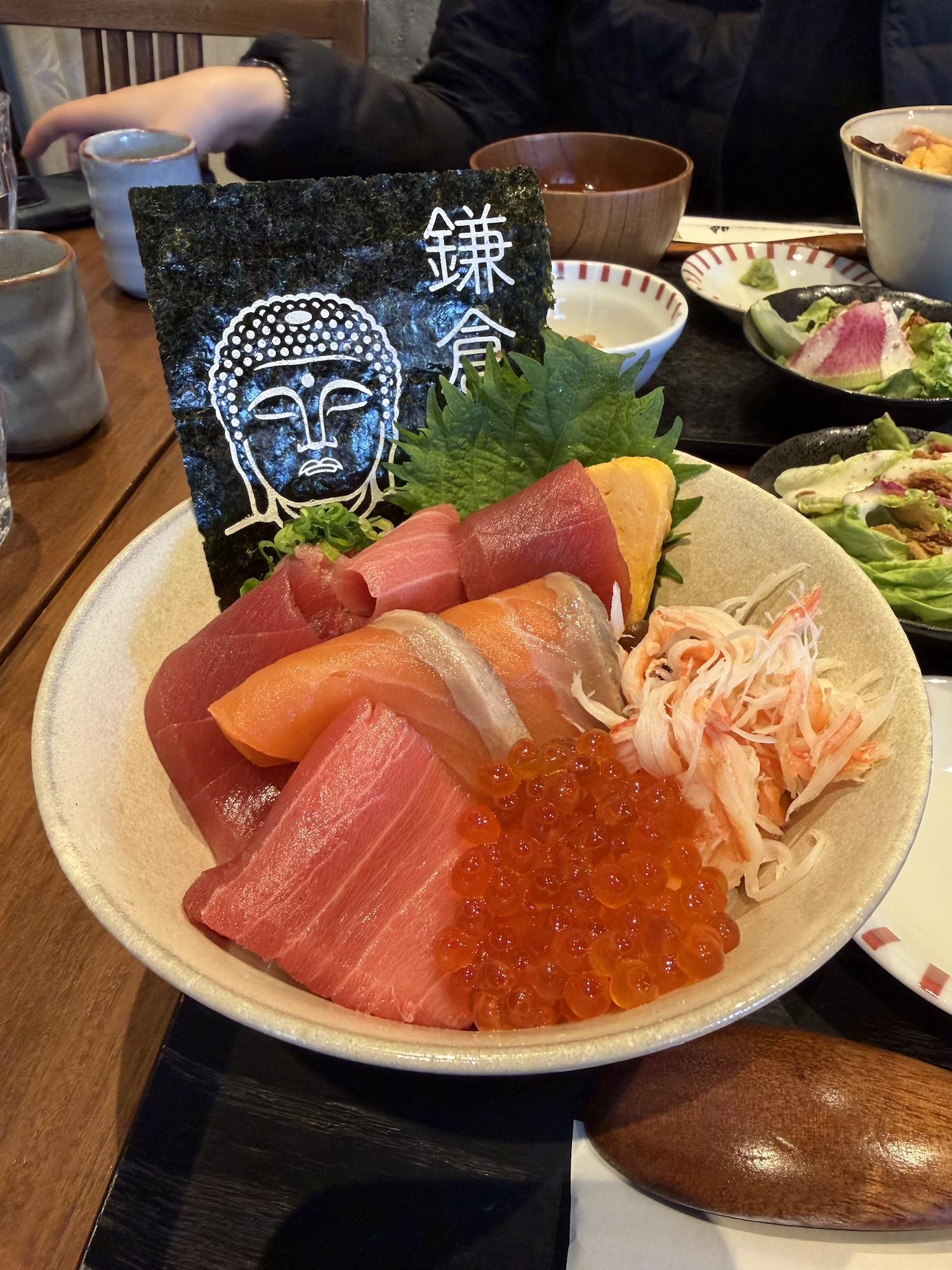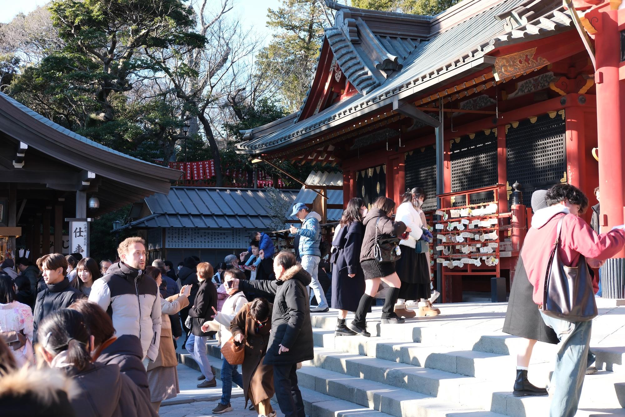Miso nikomi udon. I had heard of this, but first time trying. The udon were surprisingly al dente -- like Italian pasta al dente -- which is rare in Japanese food.I have a big thing for tanuki, so I take a look whenever I see in the shop window. Sadly, none of these came home this time.I was told that this year's oyster harvest was light and there's a bit of a shortage. So obviously I had to go eat as many as possible.Found one of the earliest blooming Sakura trees in Tokyo, of all places.... We were definitely not the only ones though, ha.Big Buddha, arguably the most famous attraction here.Buddha has tech neck too apparently.We arrived close to new year, so hatsumode (Japanese New Year celebration) was still in full swing. Nearly all the shrines + temples we visited had buzzing crowds.Thematic decorative seaweed.